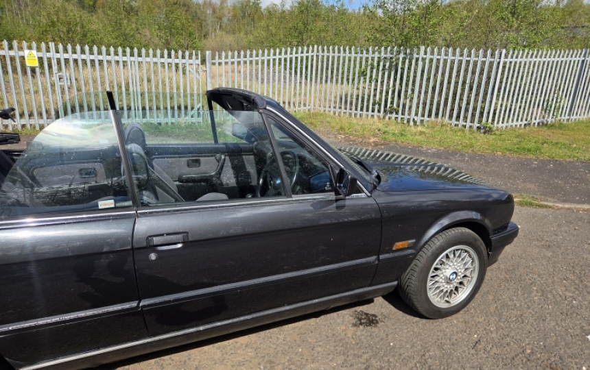 1992 BMW 320i E30 5 Speed Manual Convertible. The car has covered 87000 Miles but had a documented Speedo change at 54K. The clock shows 33K. We have a sizeable history folder full of main dealer receipts, the original handbook and service book with 10 plus stamps, which a lot are main dealer. The car got damage to the roof in 2013 and was declared a CAT C and then subsequently had a new roof.