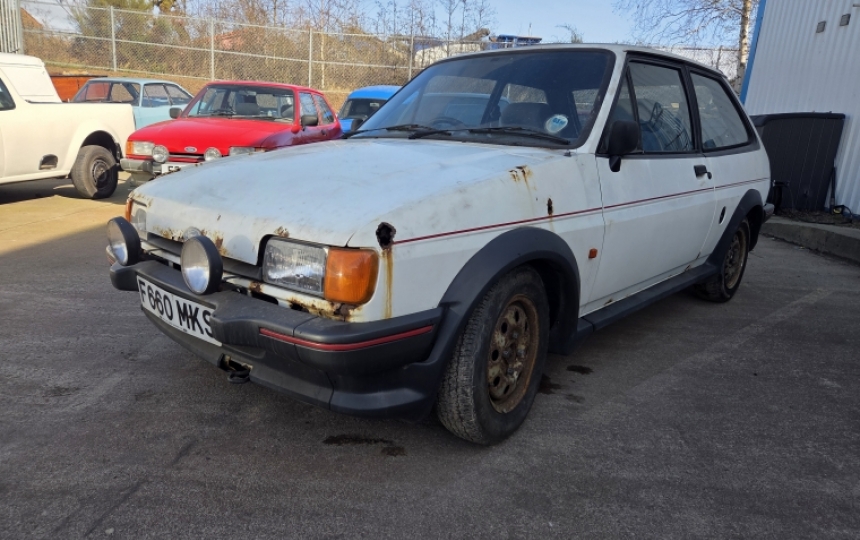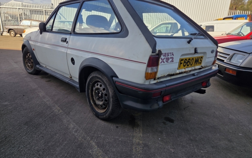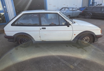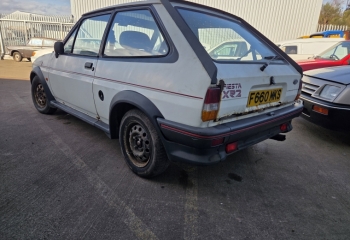 Ford Fiesta 1.6 XR2. 1989 F reg with 80,000 miles. This car has only had 2 oowners and looks to have last been on the road in 2010. Since then it looks to have been stored and allowed to deteriorate. Its probably only a spares car or a very brave restoration. we do also have a LHD 1.1 car in white which is a good shell.