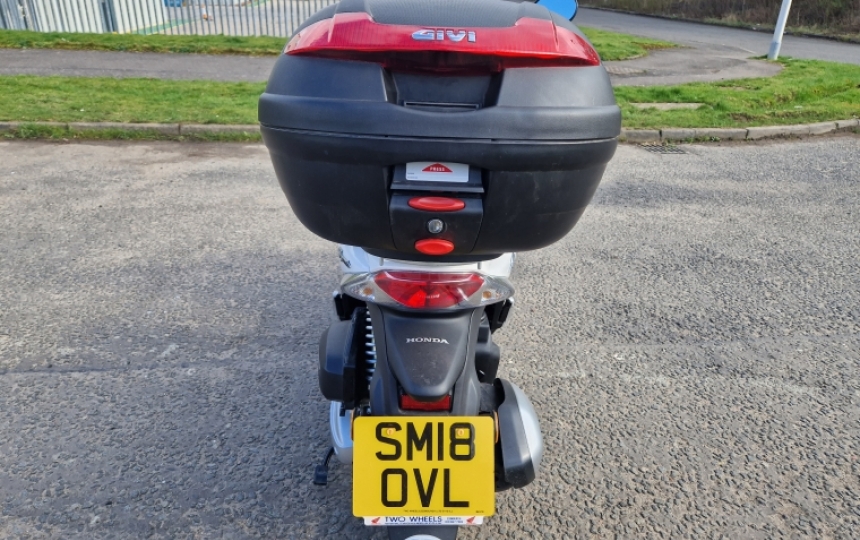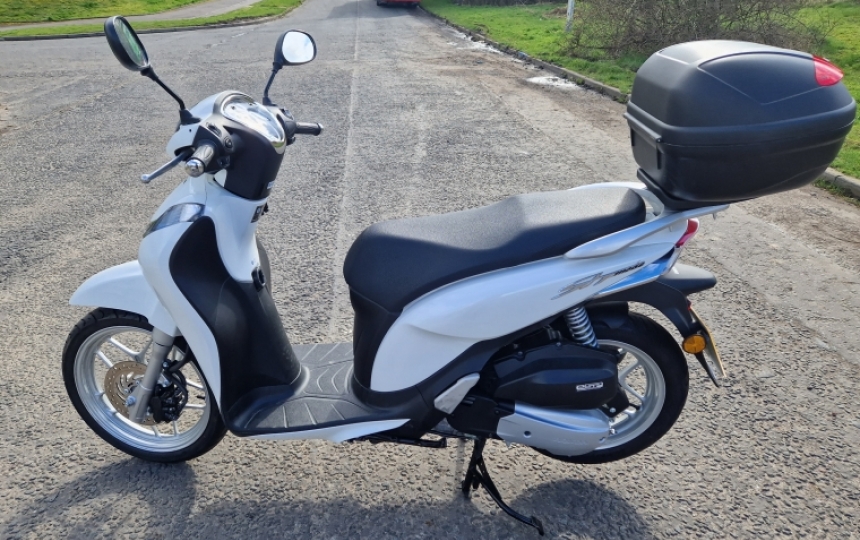 2018 Honda SH125 mode. 1 Lady Owner from new and only 568 Miles. It was used when the owners went away with their motorhome and has been kept dry stored in between usage. We have the V5, two sets of keys, service book showing it last serviced 5 miles ago and the original owners manual. Its basically the same as the day it rolled out the showroom. It also comes with a years MOT.