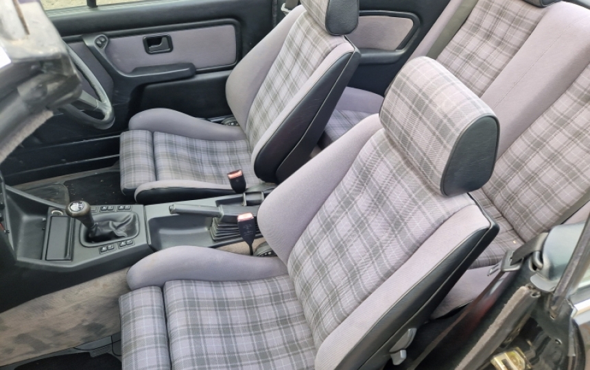 Body - E30 BMW Convertible in Diamond Schwarz Metallic. Very Solid Car underneath Good panel gaps. Nice and straight along the sides. Paintwork is still very nice. There is a scuff on nsf bumper corner, very minor bubbling on bootlid edge, small bubbles on osr lower quarter at bottom of the arch. These are all minor but only right that I point it out. Overall a very tidy looking example. Roof is in very good order.