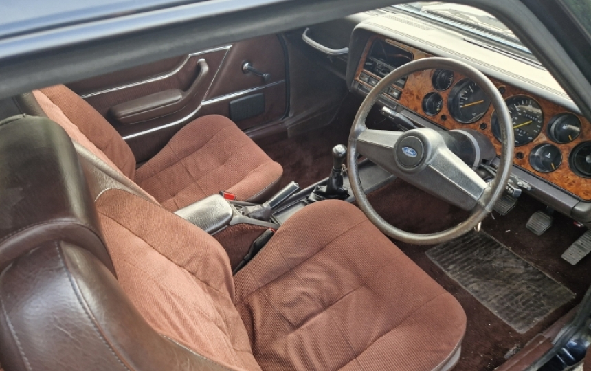 Interior - Looks like its original Ghia interior which is in very good condition. Uncracked and uncut dash with original radio. Good door cards and rear quarter cards. No rips or tears in seats. Good carpet and headlining. Drivers seat base is sagging a little. Parcel shelf is also very good.