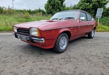 Ford Capri MK2 3.0 Ghia Auto. First Registered 20/10/1977 and it has had 6 former owners. The current owner has had it since 2016. We have a history file with it which contains MOTs dating back to 2004 and tax discs from 1987 to 2014. There are various receipts for parts bought. It was subject to a bare metal respray in 2003 and there are photos in the file to back this up. We also have a copy of an article in Classic Car Weekly where the car was featured in 2007. The car also comes with an MOT till May 2025
