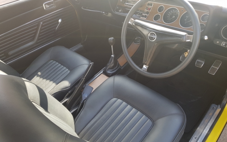 Interior - All fully retrimmed seats, new carpet, new headlining, good dash top. steering wheel . All guages work perfectly.. Still has original dash lower shelf, rear parcel sheld, original radio,