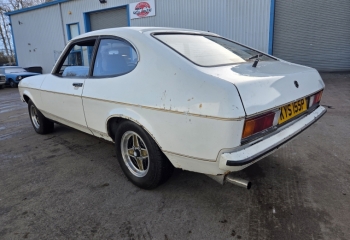 Here we have a genuine 1 owner, zero previous owners on the V5, Capri Mk2 1600 GTS. These were commonly known as a JPS even though thats not what Ford called them. I thought Id get that in there before theres an onslaught of folk dying to correct me. This particular car was bought new from Armour Motors Ford in Giffnock in Glasgow by a gentleman from the Edinburgh area. The car was only used till 1981, covering 53000 miles, when it was garaged for some reason. We have the original V5, a current style V5 and confirmation from the DVLA that they have inspected the car and are happy its genuine. We also have paperwork from Capri Club International confirming the cars identity. It will need a light restoration but its totally complete and can be heard running