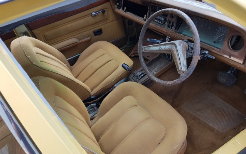 Interior - Original interior. Good seats, fronts are not bolted in, good carpet, headlining and doorcards, handles and fixings are in the boot. Dash and steering wheel a bit discoloured which may clean.