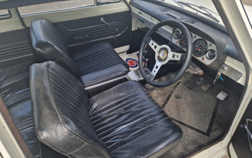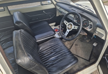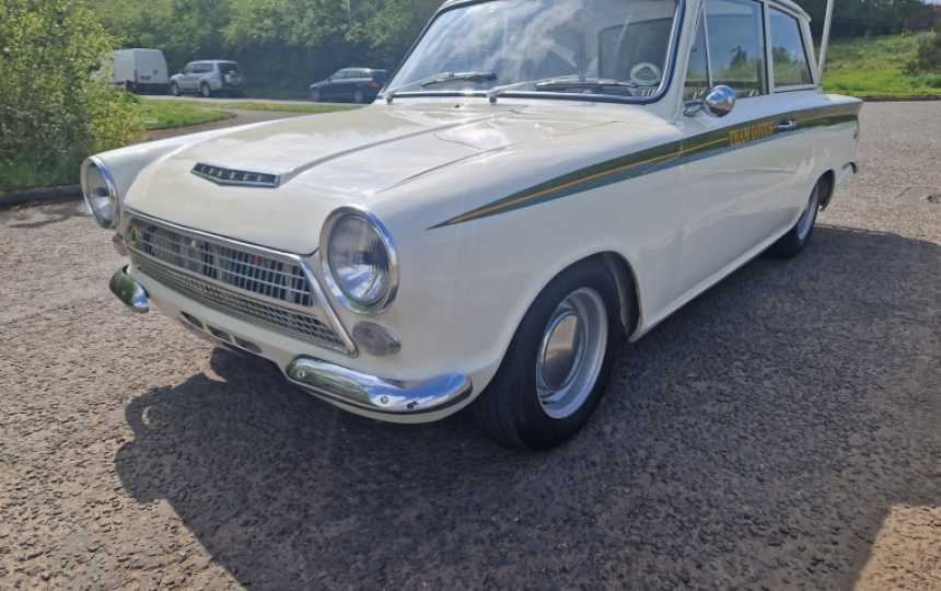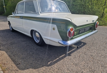 Body - Mk1 Cortina 2 Door shell which started its life as a Deluxe Model. Its had some work underneath in the past, as most have but is currently solid. Its allpainted body colour underneath and not caked in the underseal. Paintwork is nice and tidy and stands out with the additional Team Lotus decal. The car looks to have had arches and repairs to rear lower quarters in the past as there is evidence of a bit filler in these areas. If you want a show winner this might not be for you but if you want something that looks good and has a decent bit poke then read on. Good quarter bumpers, window rubbers and trim