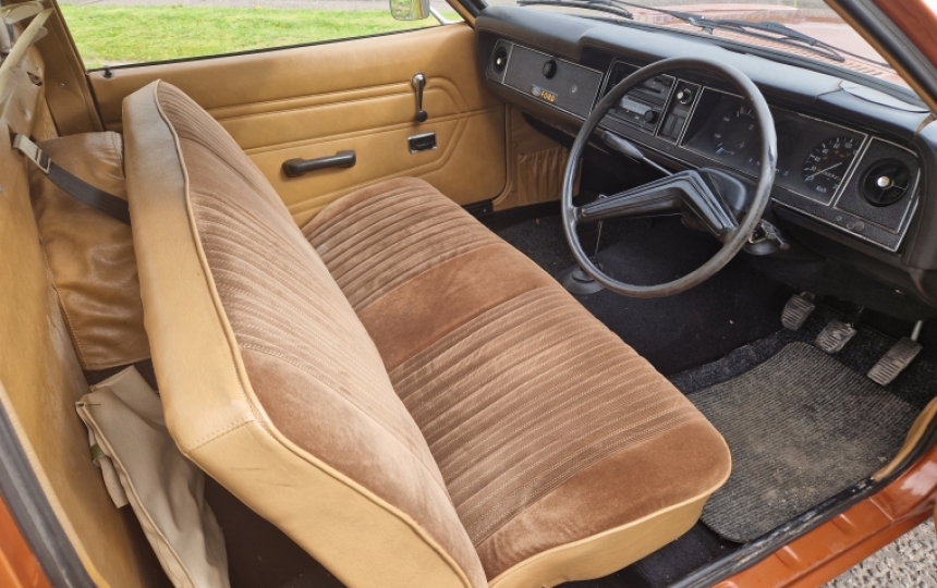 Interior - Very tidy inside with bench seat, dash top has a small crack. Good door cards and headlining. Original spare wheel cover and jack bag.
