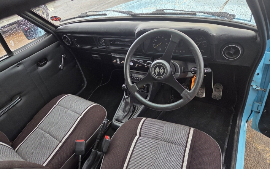 Body - Good looking car, which is Bermuda Blue, similar to our Riviera Blue. Good straivght car. original inner wings, strut tops, sills rear arches. Its had a repair on the nsf front floor pan otherwise it looks pretty original underneath. Paintwork is nice and tidy. its not a concours car by any means but very presentable. Rs rear spoiler, quarter bumpers, spotlights fitted.