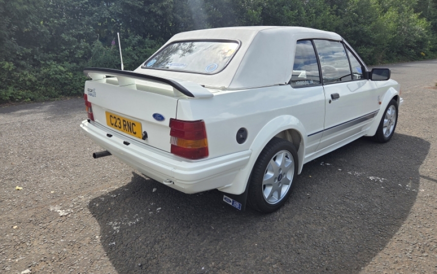 Here we have quite a rare Escort MK3 SE Cabriolet. These were a limited edition with the matching white roof, sidestripes, bumpers and bodykit similar to the RS Turbo. This car comes with the plate thats on it which was put on by the last owner. mIts original reg was C763 VFP. We have the V5 here, lots of old MOTS and receipts for money spent over the years.