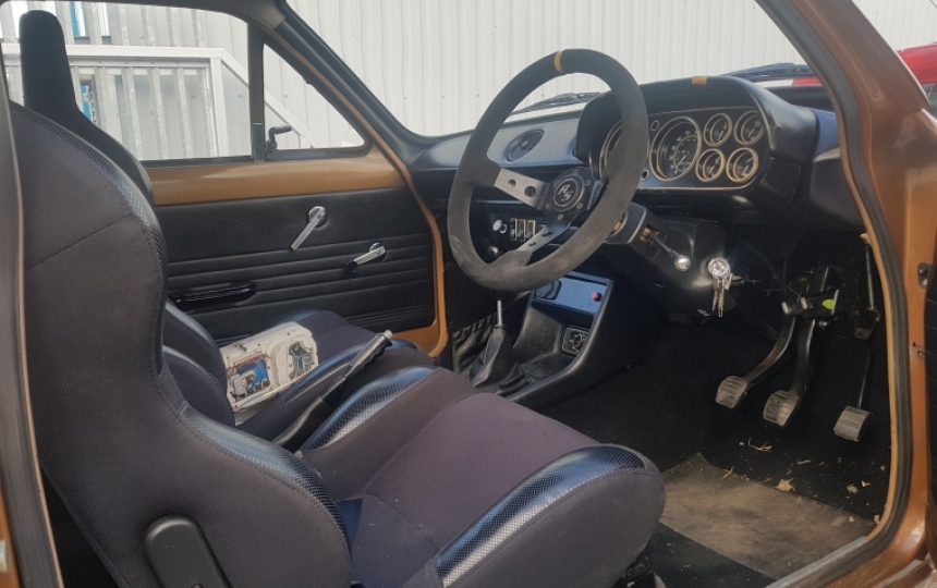Interior - 6 dial dash. Oil pressure and rev counter not working. standard rear seats. Front aftermarket bucket style seats and harnesses. Dash top has a crack on it. Good headlining, door cards and carpet.