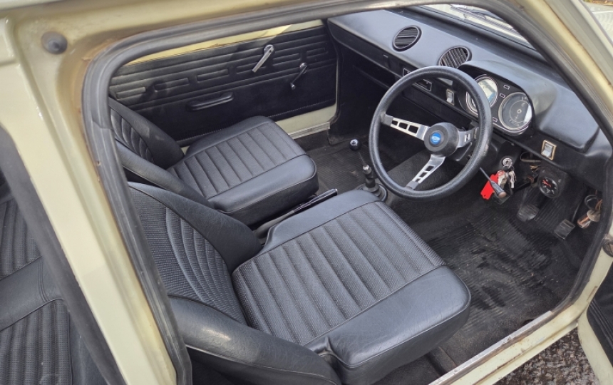 Interior - Seats have been upgraded to the ones fitted which we believe are the same as ones found in Mexicos and Twin Cams. 2 dial dash, good dash top, still has its original rubber floor mat fitted. Aftermarket steering wheel fitted