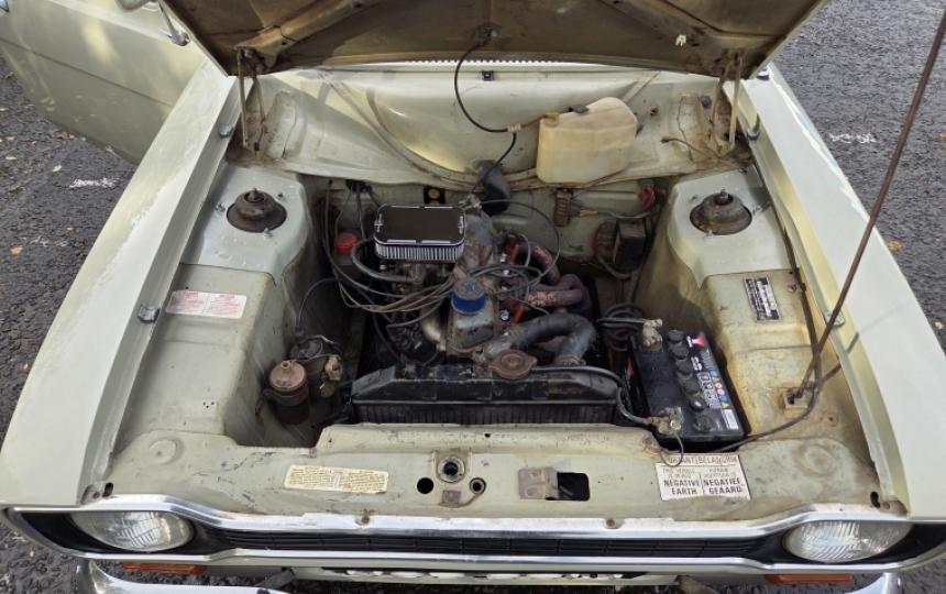Body - 1970 Export spec shell with similar strengthening to our sporty models. Doesnt have trampbar brackets or studs through the boot floor but has everything else. Its never been welded and retains its original floors, sills, inner wings, arches, pillars and so on. The shell is olid with no underseal or anything. It will maybe need a wirebrush and some sort of protective coating but for now its been left as it is to show how good it is. The last owner had the exterior painted in its original colour as the paint had faded. We have pre paint pics available if anyone wants them. Paintwork is nice and tidy. Car is very straight. The doors sit lovely in the apertures. When looking for an original Henry Ford Mk1 shell, this is about as good as you get. 1100 badges still fitted. Underbonnet and in the boot were not painted and left original, apart from the strut top plates which had been sanded back to check the vin no prior to export