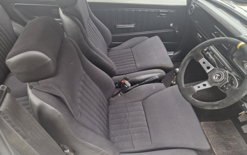 Interior - RS white needle dash. Rev counter not working and speedo but we have a new speedo cable here. Rolltop seats with matching rear in very good order. Door cards look like new. Deep dish suede steering wheel.