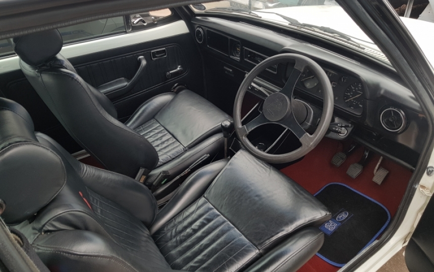 Interior - RS dash with fully working white needle clocks, clock and pod, Rolltop seats which have been retrimmed in leather and the backs to match. Rs centre console, original radio, black headlining.