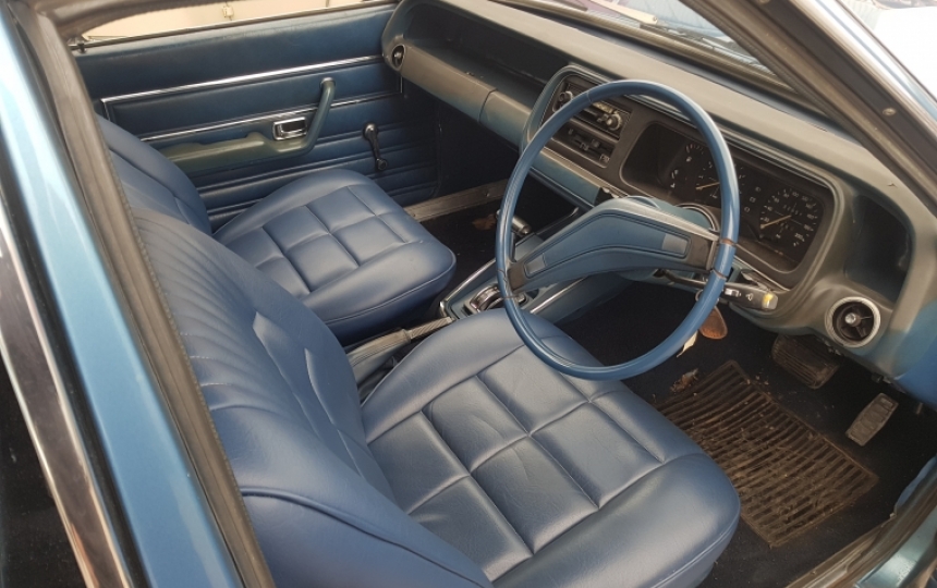 Interior - Original blue interior. good original seats and door cards with no rips or tears. Good headlining. Dash is good in the main with one very small tear on top. Steering wheel has a crack on it
