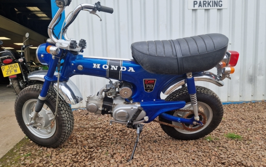 Classic Honda Dax ST70. Imported from South Africa a number of years ago. Not Uk registered but we can help with that. The bike has recently had a new ignition fitted, new fuel pipe and we had it running yesterday. It will need a service and carb cleaned but I did have a run round the yard in it.With it comes a 58 plate black Chinese copy bike which looks complete but we have not had running. The chinese bike is Uk registered and has a V5. We are selling as a pair and will not split them.