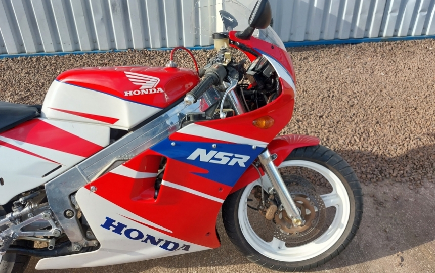Honda NSR250R MC16 model recently imported from South Africa. The bike starts runs and drives and has covered just under 26000 miles or 41000 kms. All import duty has been paid and the NOVa declaration has been done. We will complete all the registration paperwork for the new owner.