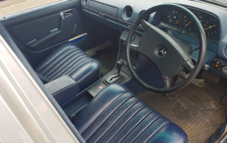 One owner 75000 Miles Mercedes Benz 200 W123 Series. This car was recently imported from the dry climate of South Africa and it is now fully UK registered with 11 months and ready to drive away. The car is solid from front to back and very very origoinal. We have the original handbooks, service book which shows some service history. The plastic is still on the inner sills at parts covering the carpets. we bought it from the original owner and he claims that apart from him nobody else had even driven the car from new.
