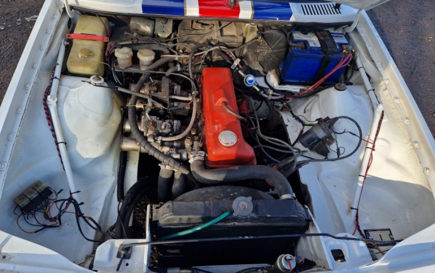 Body - Very solid car with Manta 400 kit. Bonnet is fibreglass, as are the one piece front wings. Rear wings are riveted and not blended in as they would probably be on a rally car. Floors are all good and were paintred white when it was built. Could do with a bit cleaning and a freshen up on a few bits whee paint is cracked or flaking. No holes or rot underneath. Rothmans rally decals, two up two down spotlights, full glass and no perspex windows. Car looks to have been built as a fast road car for a bit of fun. If its done any competition stuff I think its been light use. Full bolted in roll cage in the car.