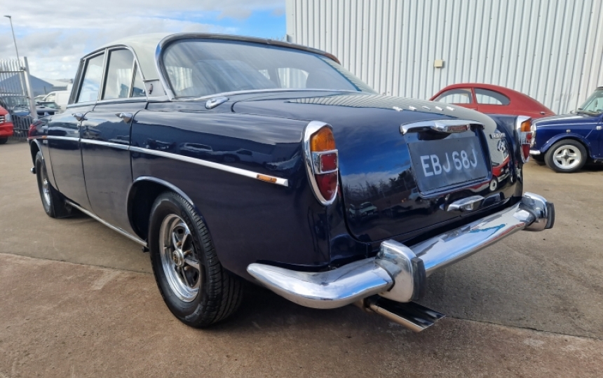 Body - Rover P5B Coupe. Last owner has restored the car at some point. All the underneath was stripped back and cleaned and painted dark blue. Its a bit lighter than the body colour, but it lets you see how solid the car is. Their is evidence of a few repairs, but in the main a very very solid old car, which if looked after wont need looked at structurally for years to come. Paintwork is very tidy with only a few minor marks. Bumpers and chrome are not perfect but are useable. Overall its a very good looking car. Not a show winner but if it was it would probably be twice the price of this one.