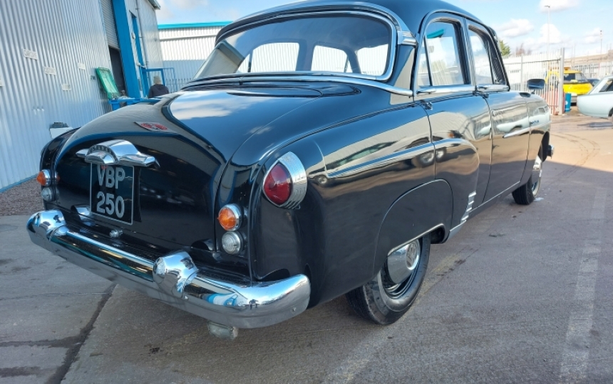 Body - 1956 Vauxhall Velox. In very good order for its age. No signs of any nasty patches underneath. Very Solid. Paintwork is nice and tidy but it has had a colour change at some point to black. It was originally silver according to paperwork. Very solid car with no signs of rot.